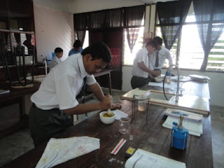 10 April 2012, Selasa Pn Norazizah Mansor bersama pelajar tingkatan 5M menjalankan eksperimen di makmal 2
